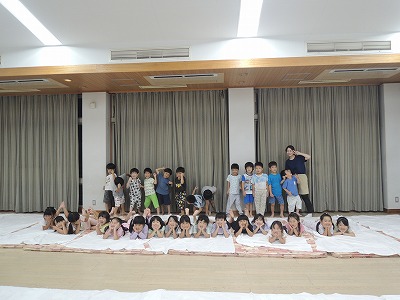 子ども達みんなが楽しみに待っていたお泊り保育★始まる前は少し不安な表情を見せる姿もありましたが、いつもと違う登園時間にドキドキワクワク!!スタンプラリーでは忍者に変身してたくさんの修行(ゲーム)をクリアできたね♪夜は皆でカレーを食べたり、キャンプファイヤーと花火を見て素敵な夜を過ごしました♡たくさん遊んだ後は、ホールでみんなで寝て嬉しかったね♫この二日間でみんなお兄さんお姉さんになれたね☆