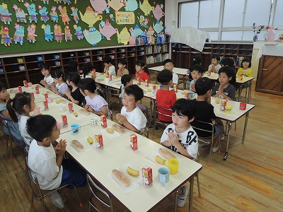 ホールに2歳児から年長組までが集まり終業式を行いました!みんなで心を込めてお祈りをお捧げしたり、園歌・やっほっほ夏休みなどの歌を元気いっぱい歌うことができました♪楽しみにしていた夏休み☆また2学期ににこにこ笑顔のお友達に会えることを