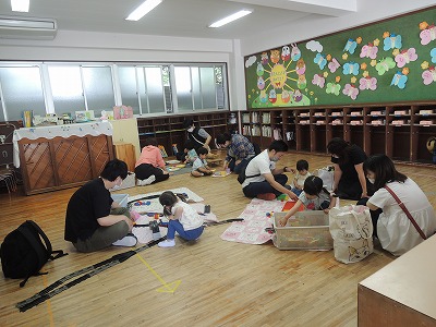 内容はホールでのお遊び、今回行った制作の他に新しくうちわの制作とお天気が良ければ園庭で泥んこ遊びも行いたいと思います。時間は10時~11時、持ち物は水筒・ご入用の方は泥んこ遊びで汚れた時用に着替えをお持ちください。