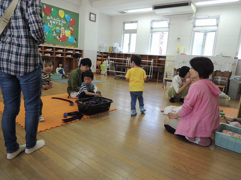 令和4年度初めての先生と遊びましょうを行いました!ホールではサーキット遊び、各クラスではおもちゃ遊びや新聞遊びをし、小さなお友達が可愛い笑顔で楽しんでくれていました♪次回の先生と遊びましょうでは、おもちゃ製作もいたしますので、ぜひご参加下さい!!