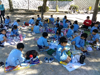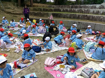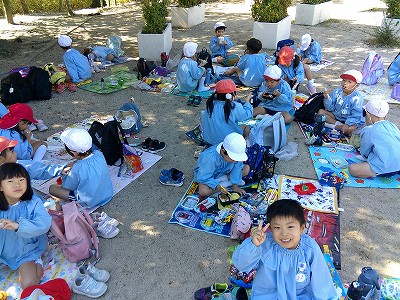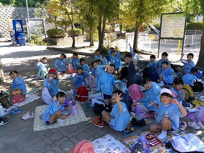 楽しみにしていた遠足!!年少組のみんなで香里の森公園へ行きました♩みんなで「ひょうたんおにごっこ」と「信号ゲーム」の遊びをしたり、お友達や先生とお外でお弁当とおやつを食べました♡