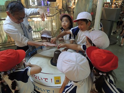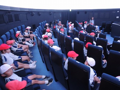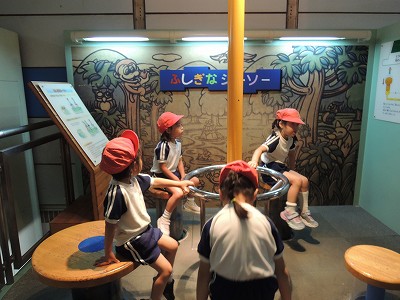 年長組みんなで電車に乗って京都市青少年科学センターにいきました。建物の中に入ると大きな恐竜にびっくり!科学のおもしろ体験をしたり、たくさんの展示品やプラネタリウムをみました☆その後はお弁当を食べ、楽しい1日を過ごしました!