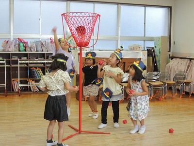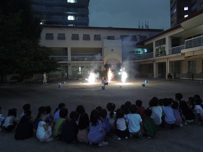 待ちに待ったお泊り保育!1日目は警察官になって事件解決スタンプラリーに挑戦☆夜はカレーを食べてキャンプファイヤーをしたり、花火を見て楽しく過ごしました。2日目はおもちゃ製作をしました!お家の方と離れて過ごすなかで年長組らしい頼もしさがたくさん見られました。素敵な思い出ができましたね!☆
