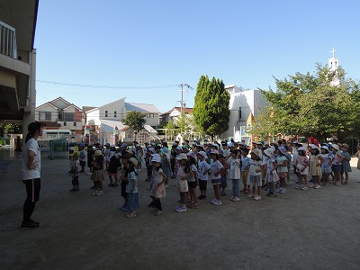 令和7年度1学期の終業式がありました。春からの数か月で、子どもたちは園での生活にも慣れ、元気いっぱい過ごすことができました。ホールでみんなで集まり、一学期を振り返る大切な時間となりました。