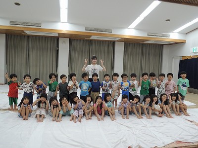 年長組は英語村に参加しました☆外国の先生と英語でコミュニケーションを取りながら体を動かしたりゲームをし楽しく過ごしました!英語に親しむ機会をいただき、子ども達にとって素敵な経験になりました♪